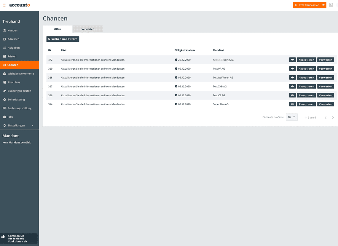 Accounto solves this problem with digital to-do lists. All pending items can be recorded on Accounto, assigned to the responsible person and given a due date. Of course, there is also the possibility to exchange information on individual tasks directly via the platform.